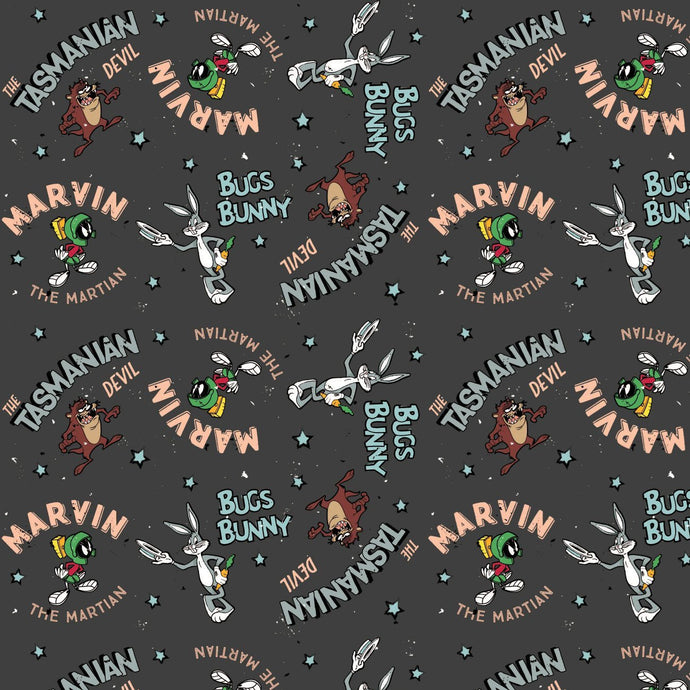 Looney Tunes II - Looney Tunes Retro Characters - Charcoal Fabric - 1/2 Meter - Cotton Fabric