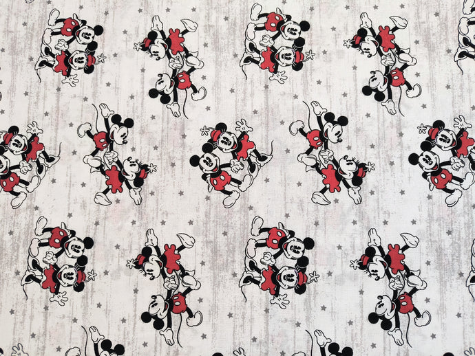 Mickey and Minnie Starlight - White/Grey Fabric - 1/2 Meter - Cotton Fabric