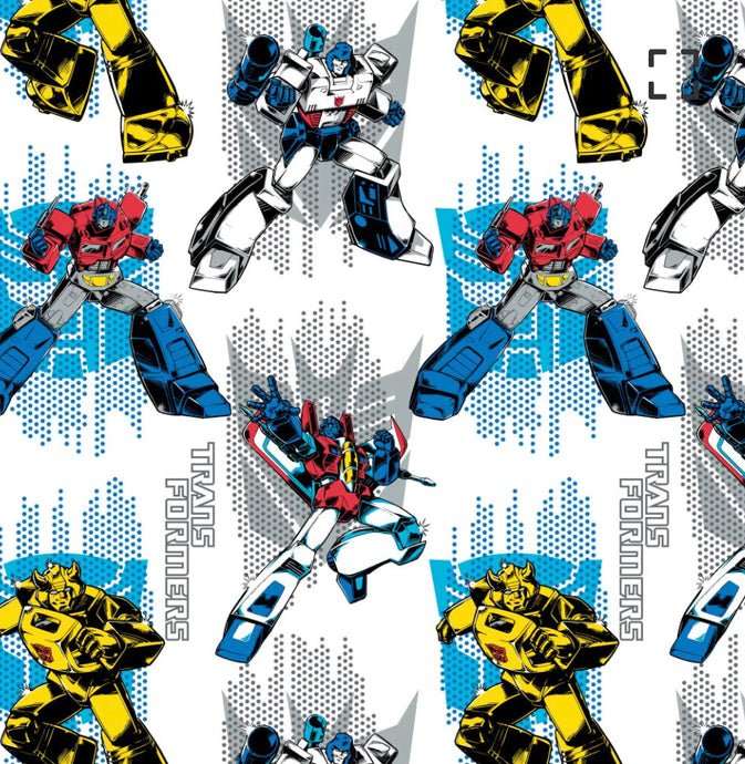 Transformers Logos - White Fabric - 1/2 Meter - Cotton Fabric
