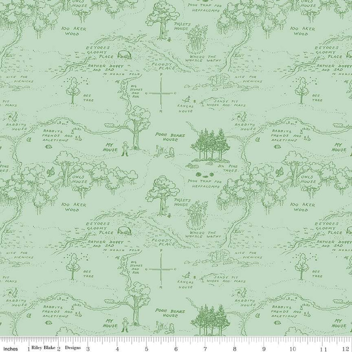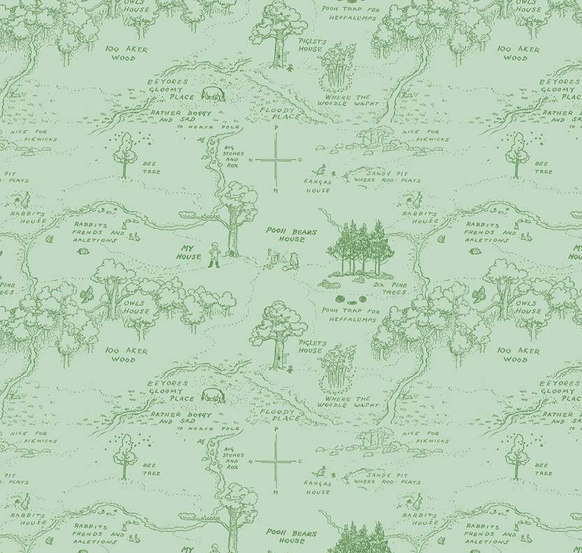 Winnie The Pooh Map C1700 - Green Fabric - 1/2 Meter - Cotton Fabric