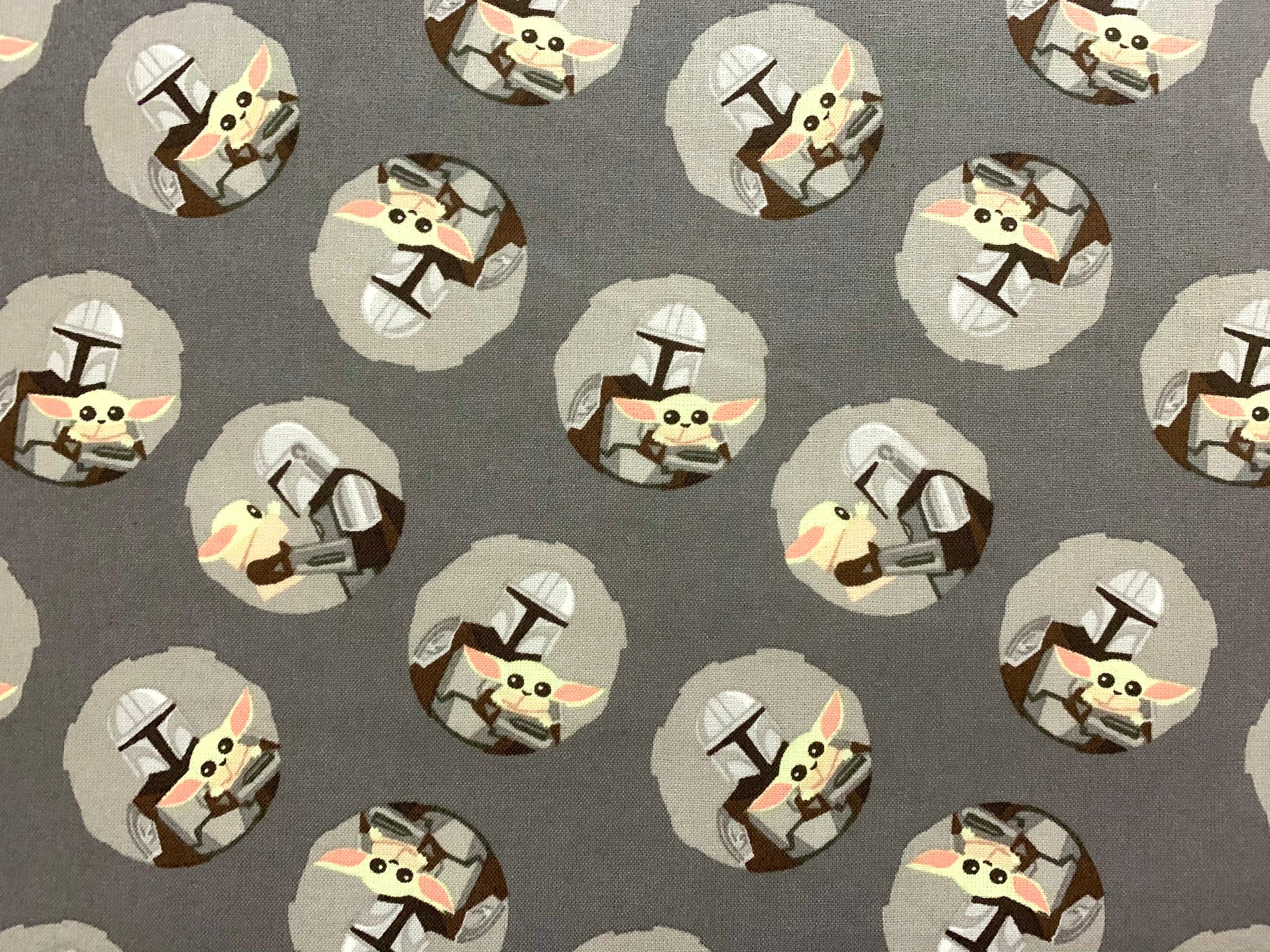 Star Wars Mandalorian II Mando and Child Toss Grey Fabric - 1/2 Meter - Cotton Fabric