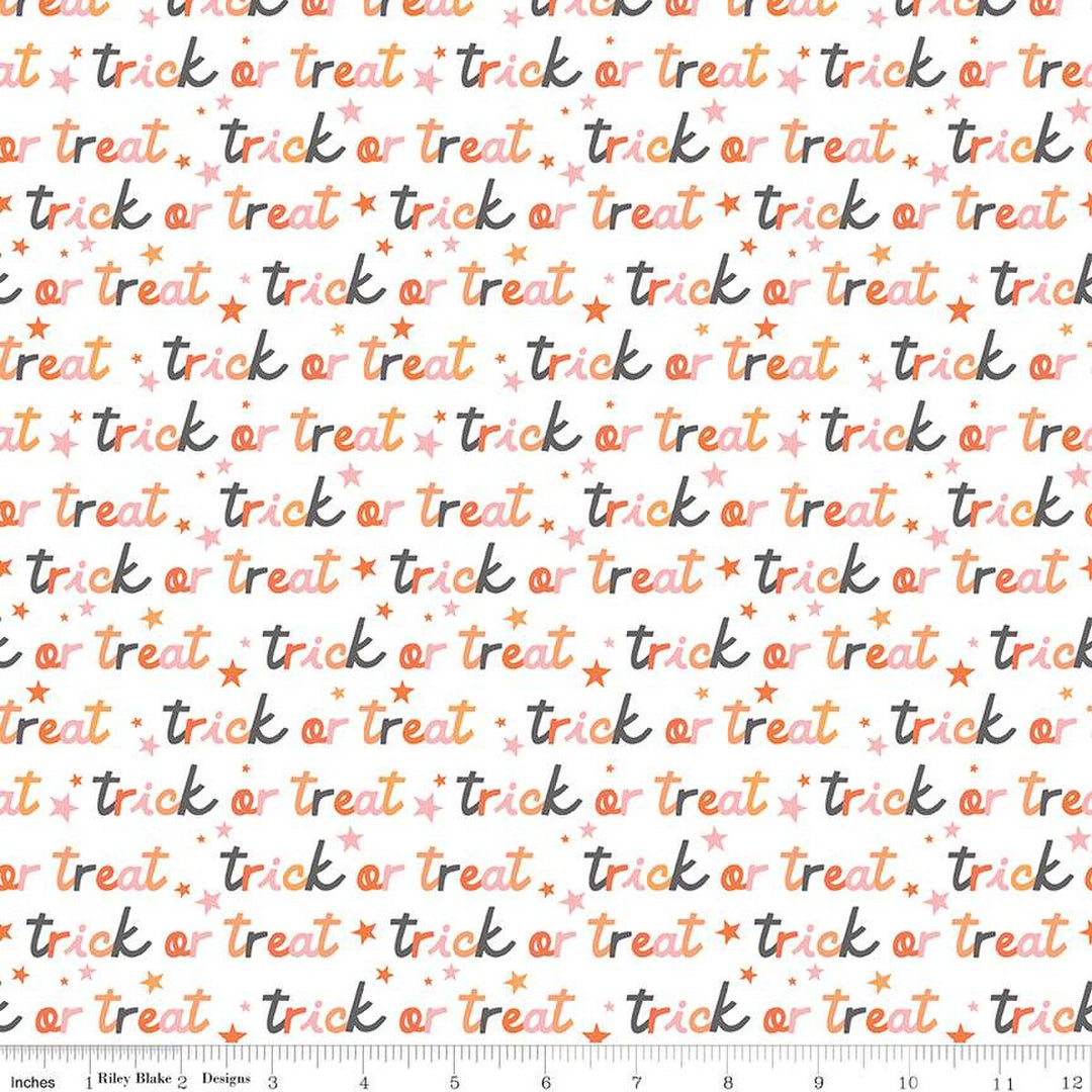 Hey Pumpkin Trick Or Treat C16034 - White Fabric - 1/2 Meter - Cotton Fabric