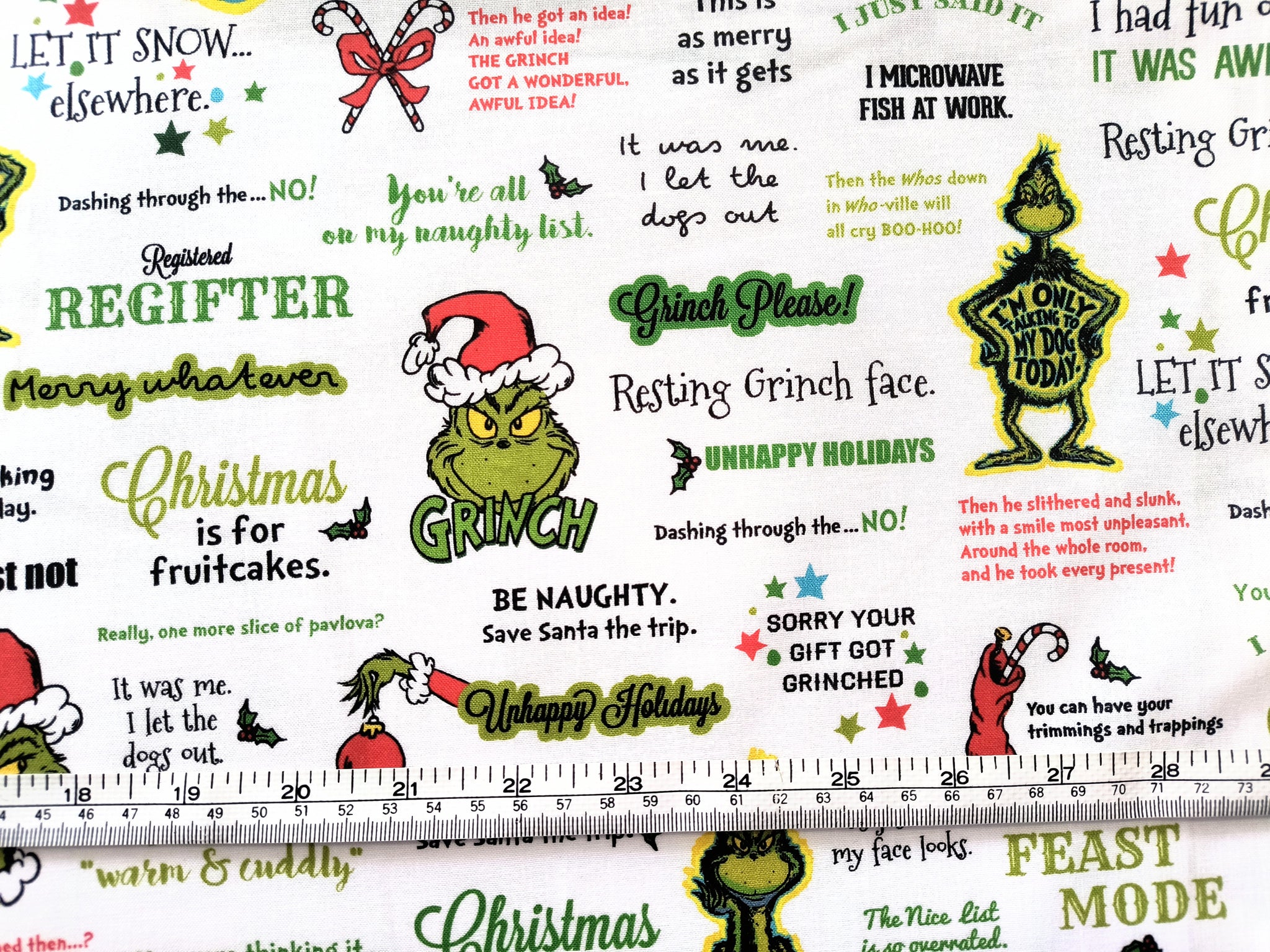 How the Grinch Stole Christmas ADE-20280 223 White Robert Kaufman - 1/2 Meter - Cotton Fabric