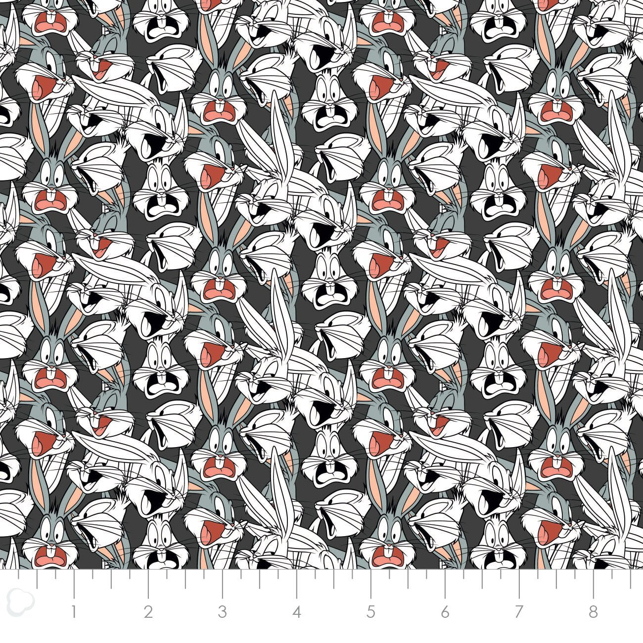 Looney Tunes II - Looney Tunes Bugs Expressions - Charcoal Fabric - 1/2 Meter - Cotton Fabric
